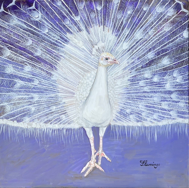 白孔雀は、光そのものが羽ばたきの形をとったような、清らかな存在に思えます。白という色は無垢でありながら、すべての色を内に秘めた完全性を象徴し、その羽根が静かに広がる瞬間、世界はひとつ深い呼吸をするように感じられます。